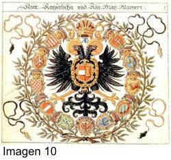 Recuérdese también que es el atributo del evangelista Juan y que las representaciones del Ars memorandi utilizan la figura del águila para posibilitar la memorización de los evangelios. Más aún, ese mismo animal deforme (águila bicéfala) sirvió de emblema para los Habsburgo (imagen 10).