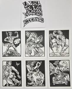Erase una vez una isla perdida en los mares y habitada por una extraña especie de hombres machos, inmutables, de extrema virilidad, que eran hostigados por una implacable y reverberante luz solar que enfebrecía sus sentidos, dificultándoles el fluir de sus ideas y conminándoles a la desnudez. Estos hombres machos coexistieron desde la antigüedad en un ambiente patriarcal, que se empeñaba en aniquilar toda fragilidad, delicadeza y ambigüedad que pudiera cuestionar su papel de macho rudo y destructivo. Estos hombres machos dedicaban gran parte de su tiempo a la ostentación y cuidado de su pene, su mayor fuente de orgullo y, paradójicamente, su punto más vulnerable, pues sin él no eran nada. En esta isla falocéntrica, hasta el paisaje se transmutaba en espejismo sexual y devorador. Estos hombres machos llegaron al siglo XXI enquistados en sus rígidas leyes, embrutecidos en sus imperturbables esquemas, y enajenados en sus sectarios juegos viriles--sobarse los “cojones” era una forma favorita de reafirmación de masculinidad. En esta isla, espacio infinito para lo ‘surreal’ maravilloso, los hombres machos se mutaron en nuevos especímenes: el macho caballo, sumun de los sueños y aspiraciones de poder y sexo; el macho homófobo, cazador de fragilidades y generador de miedos castradores--felizmente en franco proceso de extinción--; o el macho gallo que conduce orgulloso coches antiguos que parecen metafóricos fantasmas anquilosados del pasado que se resisten al cambio y que robustecen en el presente una foránea nostalgia romántica. Esta isla de machos eternos ha sido recientemente infectada por un “potente virus” de profunda ambigüedad que ha travestido los deseos de muchos machos rudos. Estamos, sin duda, ante un isla imperfecta, trágica en su belleza, extremadamente sensual y sexual donde los hombres se imponen, donde la verdad y la mentira se desdibujan y el machismo aún reverdece. Esta isla de machos eternos es un “paraíso” custodiado por el falo palpitante y rector del macho-guardián.